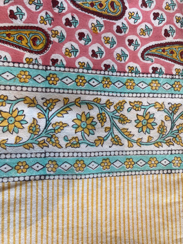 Please note: this product is hand block printed and there might be slight irregularities in color and prints occurring. These irregularities are the hallmark of hand block printed product and make each exquisite piece one-of-its-kind. Colors might bleed on the first wash.